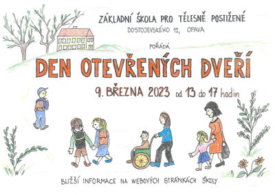 Ve čtvrtek 9. 3. 2023 se uskuteční v době od 13:00 do 17:00 hodin na Základní škole pro tělesně postižené, Opava, Dostojevského 12 „Den otevřených dveří“.